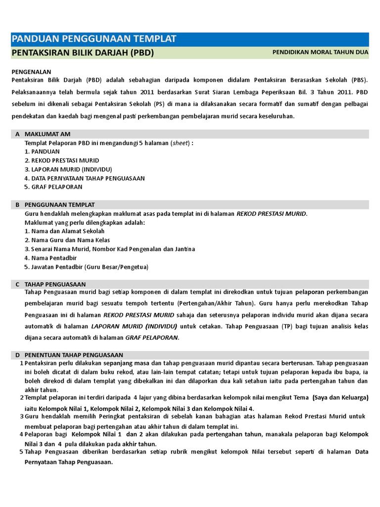 214 Templat Pelaporan Pbd Pendidikan Moral Tahun 2 Pdf